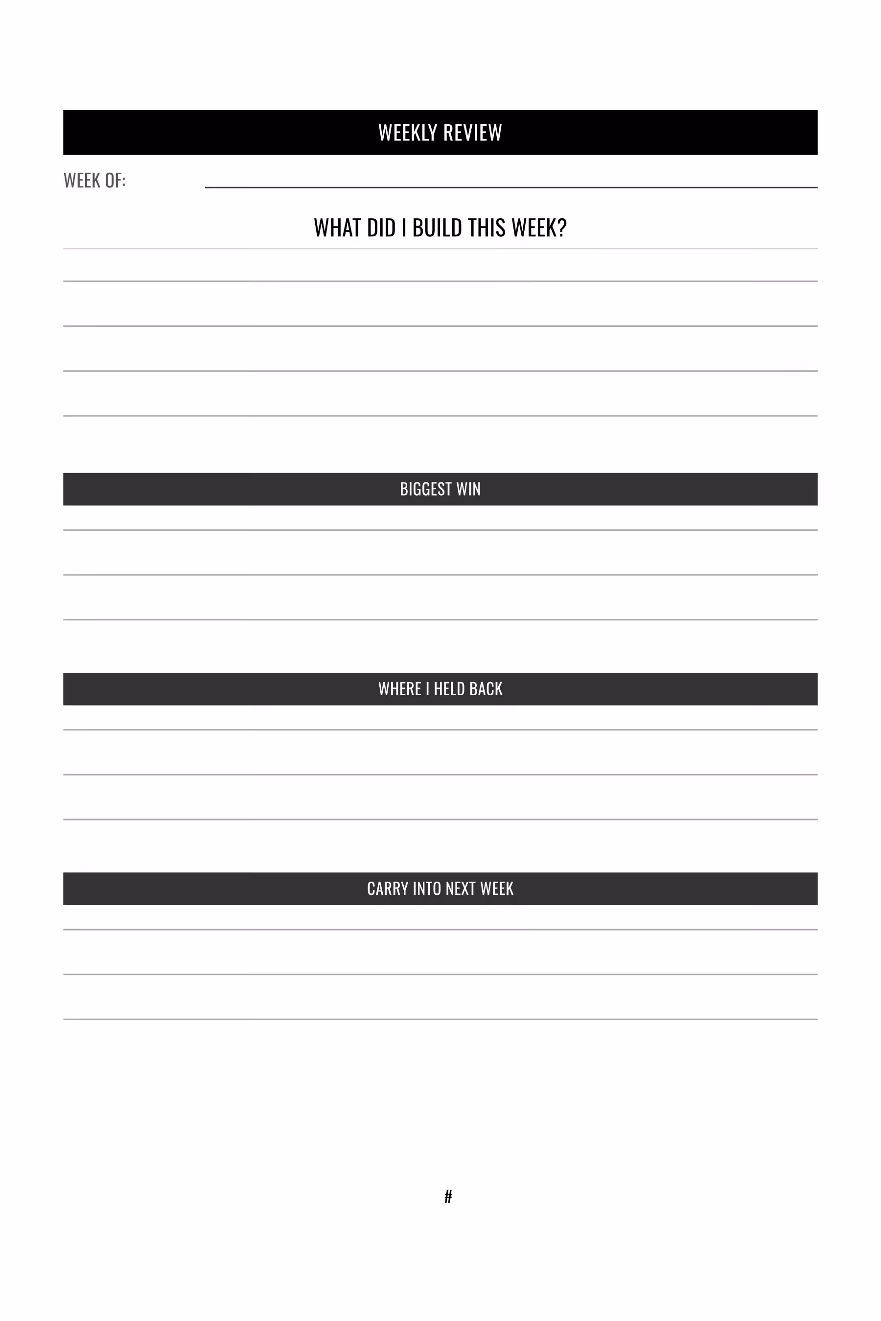 At the end of each week, use the Weekly Review to step back, assess your wins, and identify what needs to change.